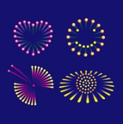 a) 국화 불꽃 (단일 불꽃 형태 : 불꽃 구슬이 한번 터짐)