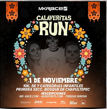 CALAVERITAS RUN 5K Y 10K + INFANTILES Celebra el día de los Muertos corriendo Calaveritas Run en el Bosque de Chapultepec, una carrera nocturna con música, maquillaje y disfraces Para la edición 2023 las distancias son de 5k & 10K, al terminar las dis