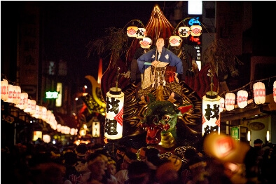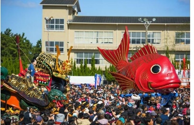 매년 마찬가지로 올해도 11월 2일부터 4일까지 진행되며, 휘파람, 종, 북으로 연주되는 미츠바야시와 히키코의 'Yennya, Yennya', 'Yoisa, Yoisa'의 소리를 높여가며 퍼레이드를 시작합니다. 이때, 14대의 호화 현란한 '히키야마'는 각각 형태가 다르고 '사자'와 '투구', '거북이'와 '도'미 등 다양한 형태를 하고 있으며, 일본 종이와 옻나무 금박 등을 입힌 세계 최대급의 미술 공예 품입니다.