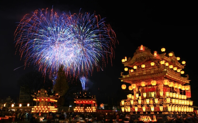 사이타마현의 치치부 야간축제 는 매년 12월 2일과 3일에 열리는 최소 3백 년의 역사를 가진 야간 축제이며 간토 지역에서 가장 화려한 행사 중 하나입니다. 축제에는 음악과 플루트에 맞춰 10~20