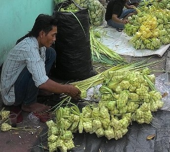 오늘은 인도네시아 명절 '르바란'(Lebaran)에 먹는 끄뚜빳(Ketupat)에 대해 설명드리겠습니다. 우리나라의 설과 추석처럼 인도네시아 최대 명절은, '라마단'(금식월) 기간이 끝나는''르바란'(Lebaran)입니다. 우리나라의 명절처럼 고향으로 대규모의 인구이동이 일어나고, 고향에서 가족과 함께 연휴를 보내며 맛있는 음식을 함께 먹는데 이때 먹는 음식이 '끄뚜빳'입니다. 끄뚜빳은 바나나 잎으로 조그만 주머니를 만들고 그 안에 쌀을 넣고 찌는 음식입니다.