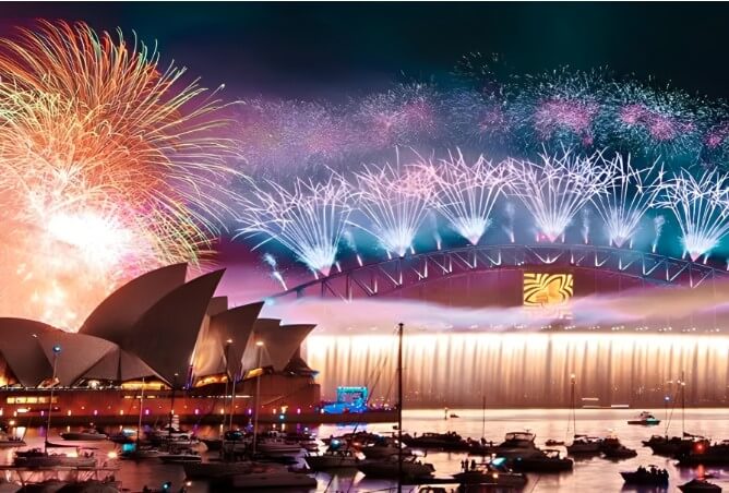 - 공지사항: 시드니 하버 브리지와 오페라 하우스를 배경으로 불꽃놀이 시간은 다음과 같습니다.
