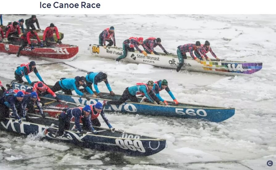 - 아이스 카누 경주( 2월 4일) : 세인트 로렌스 강을 여러 번 건너는 극한의 경쟁 스포츠입니다.