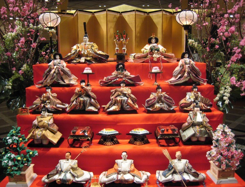결혼식을 대표하는 남녀 인형( Obina: 남자인형)과 (Mebina: 여자인형)을 전시하는데 일반적으로 7층 정도의 제단을 만들고 붉은 천 덮고 그 위에 인형을 놓습니다. 인형의 수와 제단 층수를 보면 집의 부유정도를 알 수가 있습니다. 이인형은 다음날이 되기 전에 치워두는데 인형을 그다음 날까지 놔두면 딸의 결혼이 늦어진다는 이야기도 있습니다. 하지만 요즘에는 3월 한 달 내내 두고 보면서 즐깁니다.