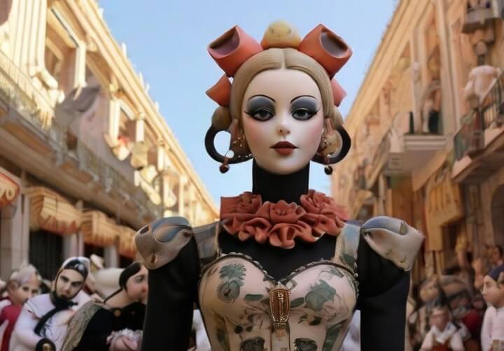 - '니노트'( Ninot): 종이와 목재 그리고 스티로폼 등으로 제작된 익살스러운 조각상, 보통 사회적으로 유명한 인물 혹은 현안을 풍자적으로 묘사함