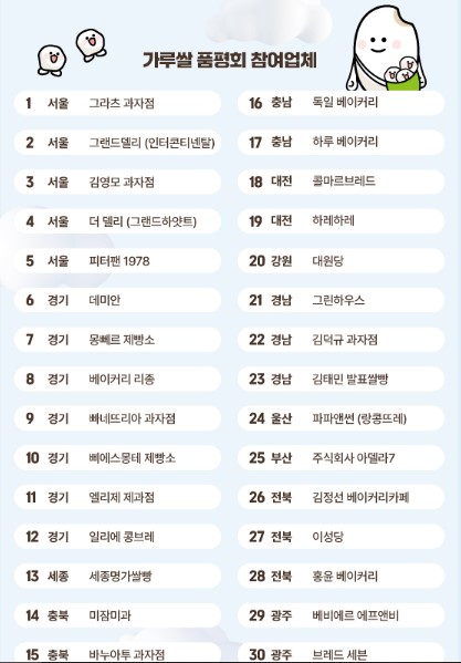 지역별 숨은 Hot 빵 맛집 18개 업체와 가루쌀 품평회 30개 업체