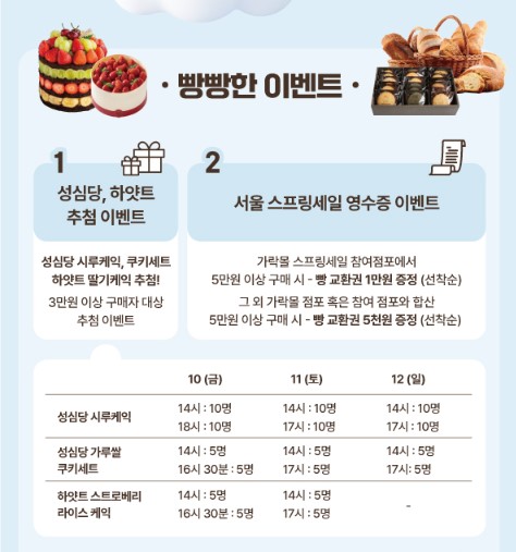 ○ 성심당시루케이크, 쿠키세트, 하얏트딸기케이크 추첨 이벤트( 총 60개), 스프링 세일 이벤트 ( 빵교환 증정)