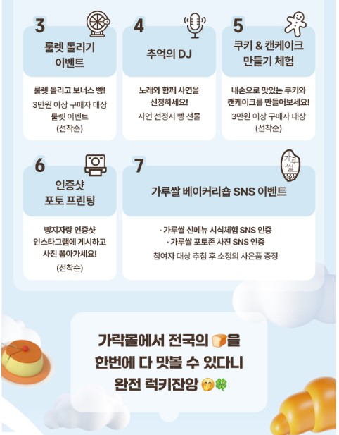 ○ 포토존 사진 이벤트, 테마별 인기 빵집 선정 및 시상식, 가락몰 구매 영수증 구매 인증 이벤트 등