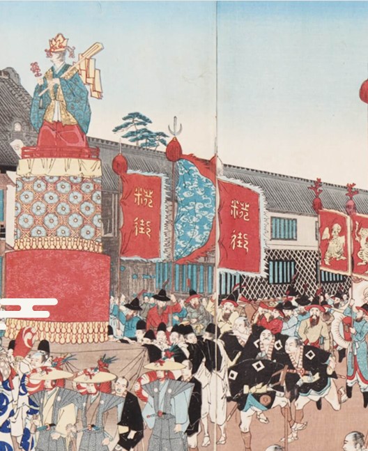 □신코사이(神幸祭:신행제)신코사이 행렬: 미코시를 등에이고 시내를 순회하는 신나는 행사입니다.