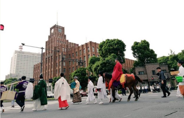 오후 1시 30분경부터 도쿄(Tokyo)의 중심부를 지나가는 300m의 신코 행렬이 시작됩니다. 고호코시(Gohokoshi) 1대, 미야미코시(Miyamikoshi)2대, 야마차(Yamasya) 6대가 행렬을 하며 주위에는 위엄 있는 궁중 복장을 한 대표 관리 같은 사람들과 젊은 호위병이 함께 하며 총 500여 명으로 구성된 전체 퍼레이드 사람들을 보면 타임슬립을 한 느낌으로 보는 이를 압도할 것입니다.