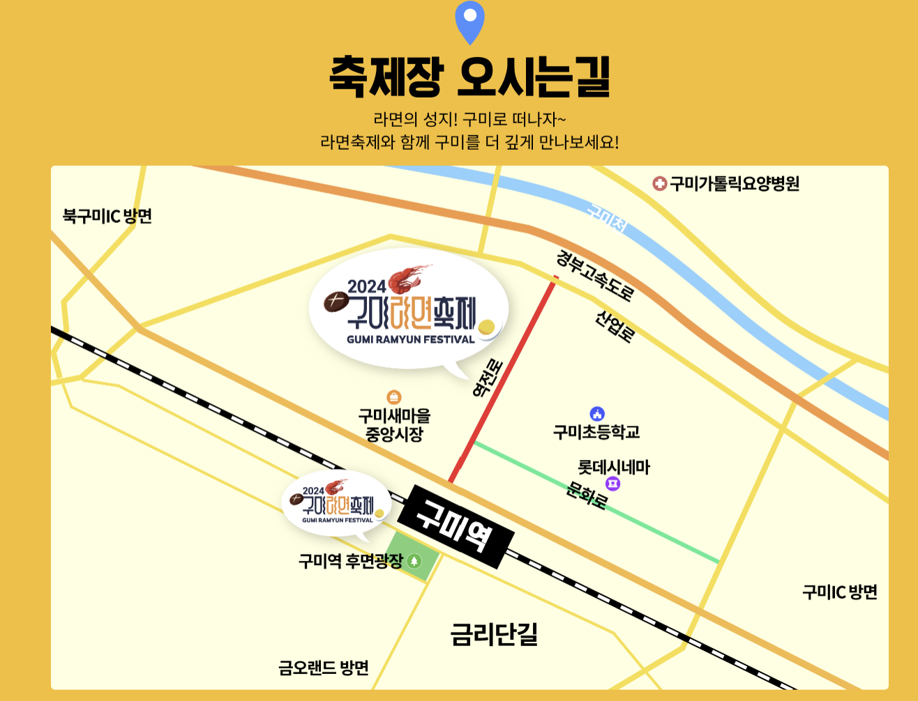 | 축제 장소 | 경상북도 구미시 구미 중앙로 76(원평동) 구미역 후면광장, 금오산 잔디광장, 문화로, 금리단길 |