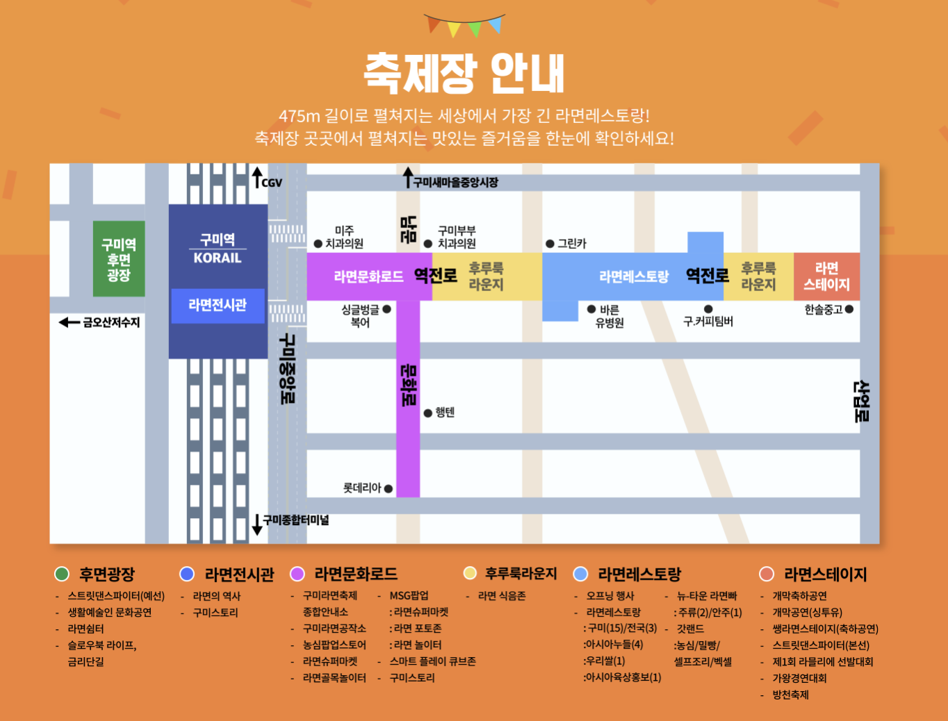 구미라면축제의 이벤트 내용을 상세하게 알 수 있습니다.
