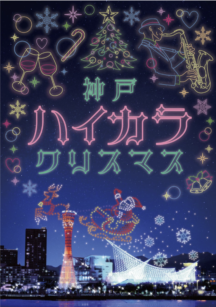 오늘은 '고베 하이카라 크리스마스'에 대해 설명드리겠습니다. 고베는 많은 분들이 아시는 대로 1868년 세계 여러 국가와 교역을 시작하면서 국제적으로 문을 연 도시입니다. 이를 계기로 외국인 거류지가 만들어지면서 서양의 다양한 문화와 습관을 적극적으로 받아들이면서 고베에 뿌리내린 '하이카라'(하이카라: 메이지 시대부터 쇼와 초기에 걸친 서양식으로 세련된 생활양식이나 그런 생활을 영위하는 사람들) 이런 고베의 매력 넘치는 문화를 크리스마스와 융합하여 다양한 콘텐츠를 제공하는 행사입니다. 빛나는 크리스마스 트리나 세계의 맛있는 요리를 즐길 수 있는 푸드 마켓등 여러 가지 다양한 콘텐츠가 겨울의 메리켄 파크에 등장합니다. 가장 큰 휘날레는 드론 약 500기를 이용한 크리스마스 드론쇼입니다.