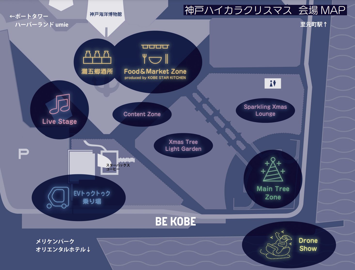 고베 하이카라 크리스마스의 기간 중 회장 내의 지도입니다.