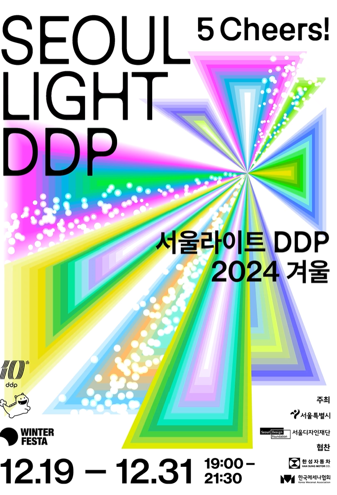 올해로 개관 10주년을 맞이하는 [서울라이트 DDP 2024 겨울]의 주제는 "5 Cheers! : 희망의 응원 릴레이" 새해를 맞이하는 우리 모두에게 희망의 메시지와 내일의 꿈을 전합니다.