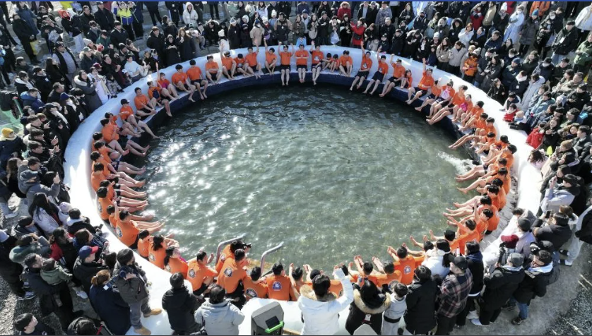 산천어 축제의 가장 큰 재미와 묘미입니다. 유니폼을 입고 맨손과 맨발로 행사장에 뛰어들어 살아있는 산천어를 직접 잡습니다. 잡은 산천어는 구이터나 회센터에서 산천어를 즐길 수 있습니다.