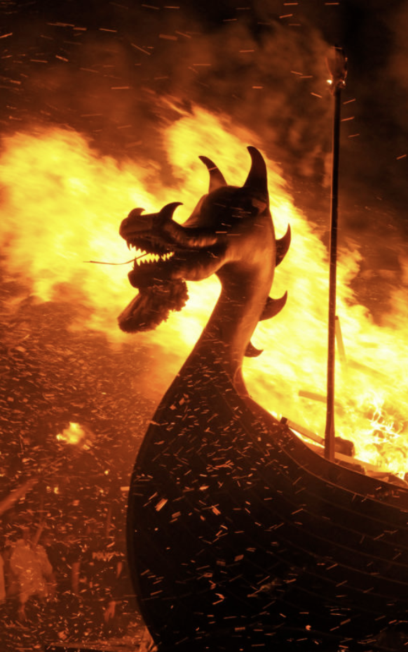 Up helly Aa 란 " Up Holy(Day) All" 란 뜻으로 매년 1월 마지막주 화요일 올해는 : 2025년 1월 28일(화) 바로 오늘 개최합니다. Yule (Yule이란, 1560년 종교 개혁 이전의 스코틀랜드의 크리스마스) 시즌의 끝을 기념하는 불 축제입니다.