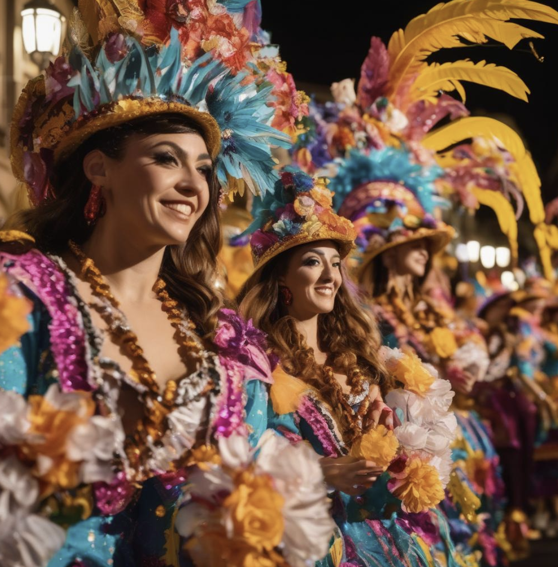 카니발이 시작되기 전에, 카니발의 왕이 도시의 열쇠를 가져와 이축제의 시작을 알립니다. 2005년부터 퍼레이드에 참여하는 16대의 마차에 카니발의 테마를 주제로 담아 플로트에 장식을 하는데 이번 2025년 주제는 ' 바다와 대양의 왕'입니다. 또 하나의 메인 프로그램인 "꽃 퍼레이"( Flower Parade)에서는 플로트 위에서 관람객에게 꽃을 선물로 던지는 순간이 포착됩니다. 또한, 밤이 되면 찬란한 조명으로 꾸며진 퍼레이드가 거리 곳곳에서 다양한 음악과 춤 공연과 함께 열리며 활기를 더합니다.