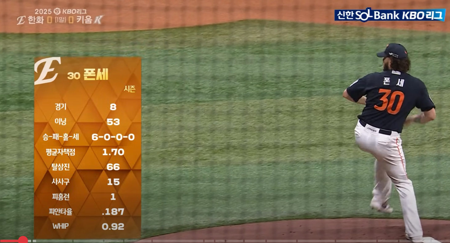 올 시즌 폰세는 시즌 7승째를 쌓으며 다승 공동 선두에 올랐습니다. 한화가 선두권을 유지할 수 있는 가장 큰 원동력이라 해도 과언이 아닙니다.