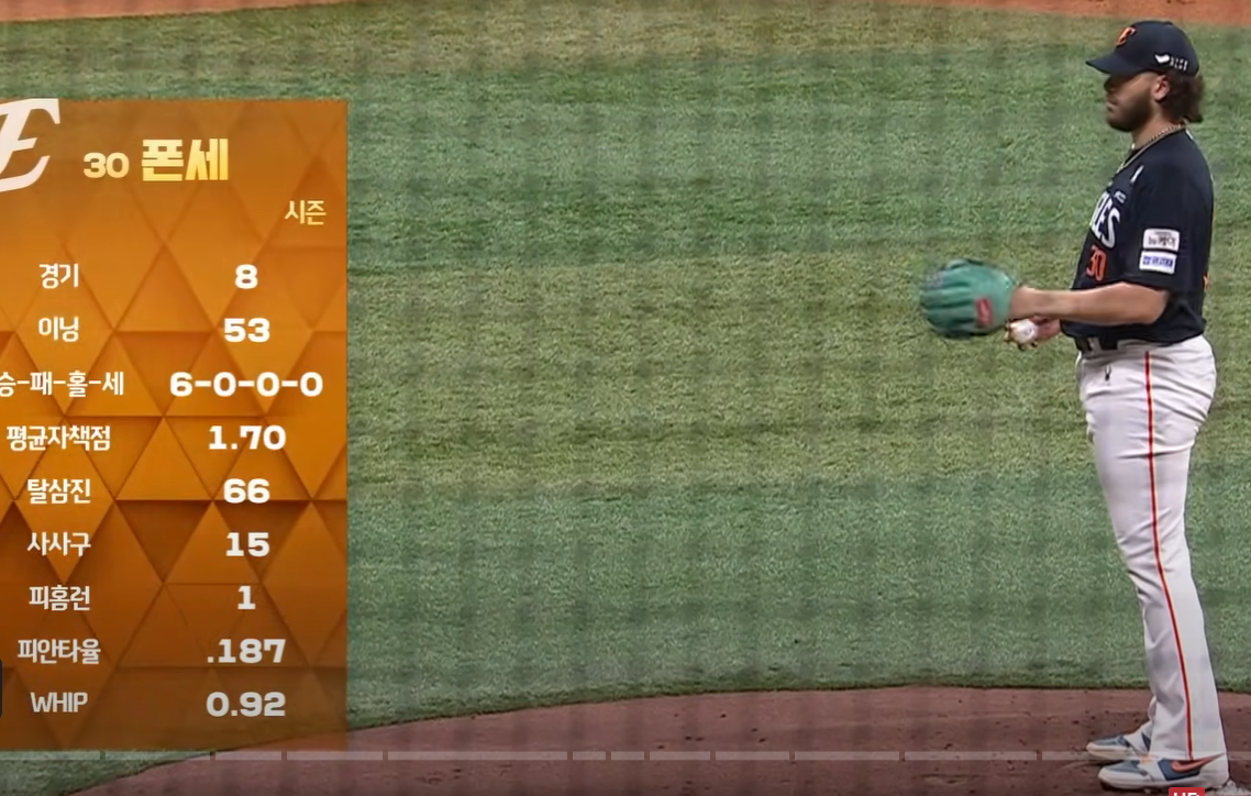 올 시즌 폰세는 시즌 7승째를 쌓으며 다승 공동 선두에 올랐습니다. 한화가 선두권을 유지할 수 있는 가장 큰 원동력이라 해도 과언이 아닙니다.