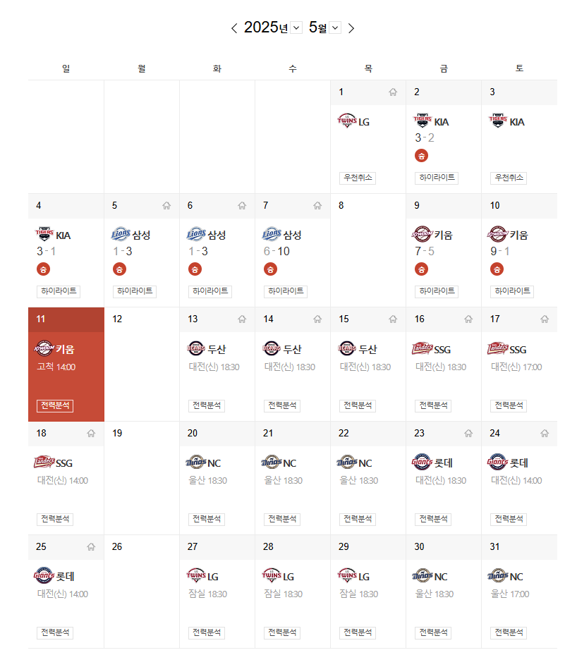 한화 팬이라면 지금 이 기세를 놓치면 안 되겠죠? 뜨거운 열기로 시작될 5월 11일 ( 일) 오후 2시 고척스카이돔에서 열릴 오늘 경기도 무척이나 기대가 되고 있습니다.