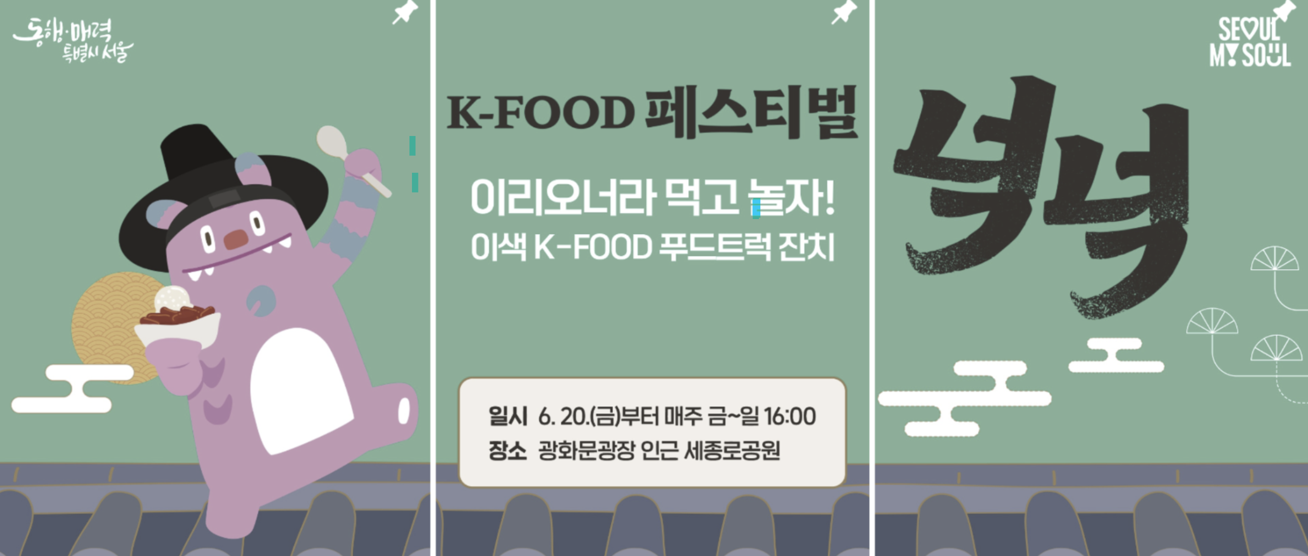 광화문에서 만나는 맛있는 축제! 오늘은, 서울 세종로공원에서 개최하는 2025 K-푸드 페스티벌 ' 넉넉'에 대해 설명드리겠습니다. 서울의 대표 명소 광화문광장에서 2025년 6월 20일부터 12월 31일까지 한식의 매력을 가득 담은 K-푸드 페스티벌 ‘넉넉’이 열립니다. 이번 행사는 세종로공원에서 펼쳐지며, 한식을 테마로 한 다채로운 먹거리와 즐길 거리로 구성되어 가족, 연인, 외국인 관광객 모두에게 특별한 추억을 선사할 예정입니다. 특히, 이번 행사는 소상공인의 참여 기회를 확대하여 지역 상권과 함께 성장하는 의미 있는 축제로 운영되며, 푸드트럭과 부스 운영자에게 실질적인 매출 기회를 제공함으로써 서울 도심 속 상생 모델을 제시하는 긍정적인 사례가 될 것이라 생각됩니다. 그 현장으로 같이 가시죠!