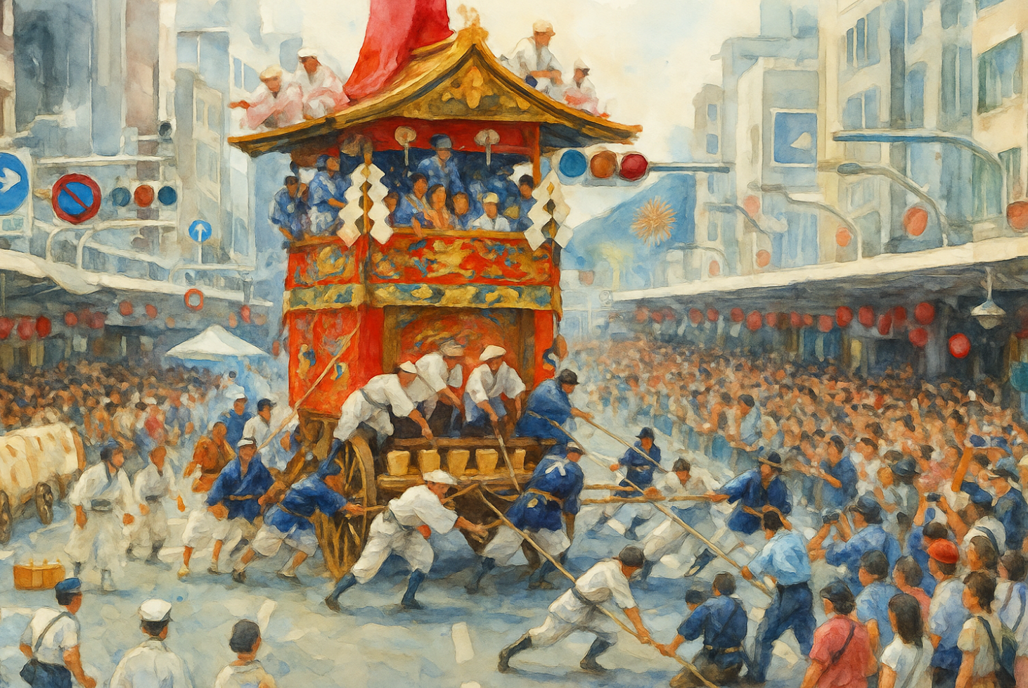 ‘기온(祇園)’은 야사카 신사의 옛 이름이며, 기온마츠리 의미는 병마를 막고 평안을 기원하는 의미에서 비롯됐다고 합니다. 초기에는 종교의식 중심이었지만, 지금은 누구나 즐길 수 있는 풍성한 축제로 바뀌었고 여름을 이기며 평안을 유지하자는 의미가 강합니다.