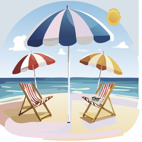 상상 이미지: 야자수 그림자 아래 데크체어에 누워 선글라스 끼고 칵테일 쥐고 있는 나🍹