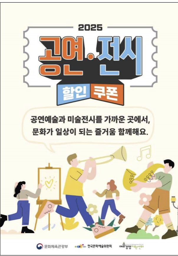 🎟 2025 공연‧전시 할인권 210만 장 배포! 8월 8일부터 선착순 신청 가능!! 문화체육관광부가 8월 8일부터 공연‧전시 할인권 총 210만 장을 배포합니다! 온라인 예매처 5곳에서 선착순으로 받을 수 있으니 공연과 전시의 문화생활 즐기고 싶다면 할인권 지금 바로 신청하세요! 블로그 뒤에까지 다 읽을 여유가 없습니다! 🎉