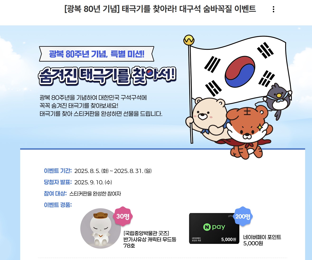 4. 광복 80주년 온라인 태극기 찾기 이벤트 참여 방법