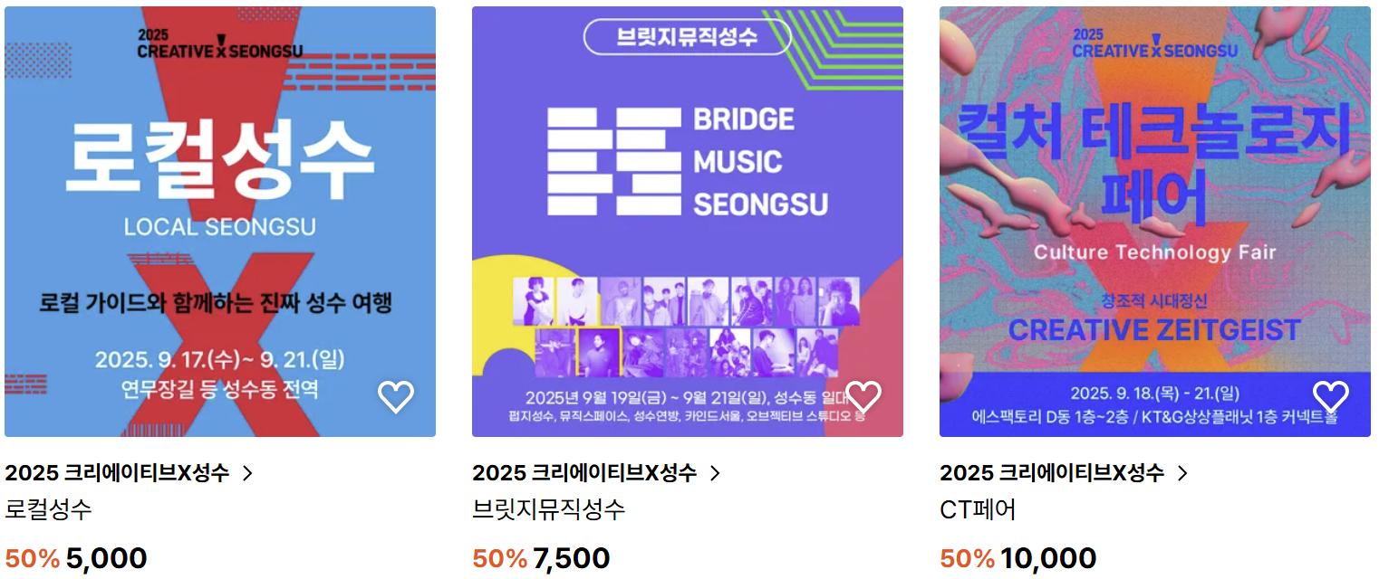 - 🌍 성수 전역 70여 공간 동시 운영 + 하루 종일 콘텐츠 덕질 가능!