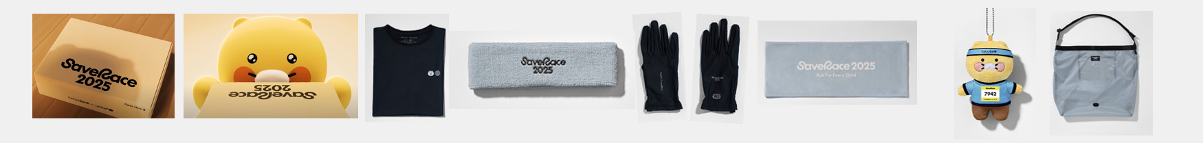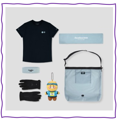 - 티셔츠, 헤어밴드, 장갑, 스포츠 타올, 춘식이 키링(번호표 포함), 에코백