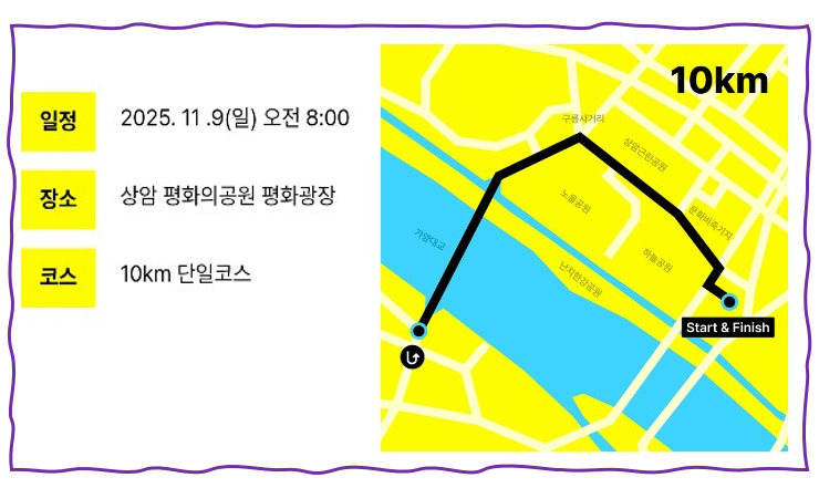 - 코스 : 10K 단일 (제한시간 1시간 20분)