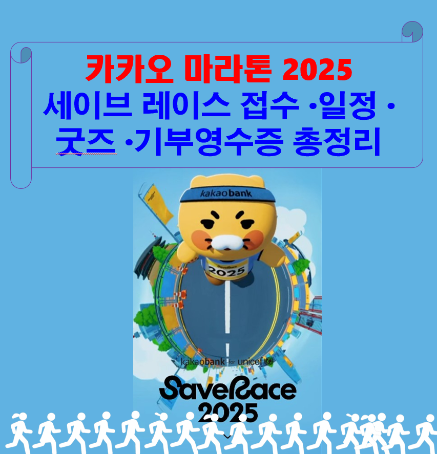 카카오 마라톤 2025 응모가 9월 1일부터 시작되었고 이제 2일 남았습니다. 세이브 레이스 접수, 일정, 굿즈, 기부영수증 등 내용을 총정리했습니다. 카카오뱅크 × 유니세프가 함께하는 친환경 기부 마라톤이 더 커진 규모로 돌아왔습니다. 이제 이틀 남았어요. 서두르세요! 응모 마감: 2025.09.19(금) 18:00 ⏰
