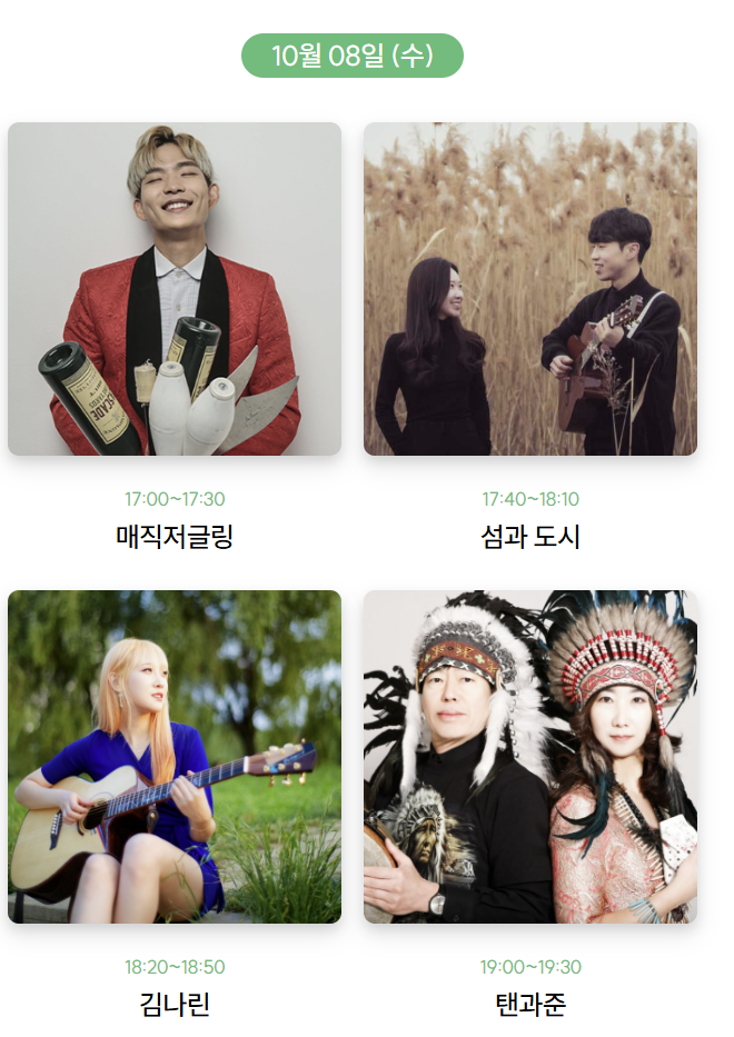 10.6(월)~10.8(수) 17:30 기타·아코디언 등 노을 무드 공연 (현장 사정에 따라 변동 가능)