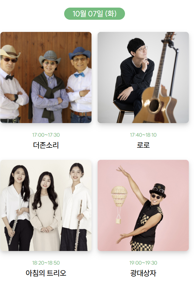 10.6(월)~10.8(수) 17:30 기타·아코디언 등 노을 무드 공연 (현장 사정에 따라 변동 가능)