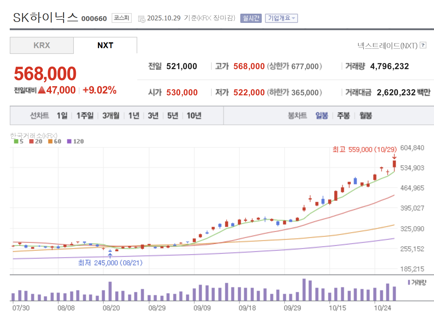 2. 반도체: 대표수혜주 일봉차트 ( '25.10.29)