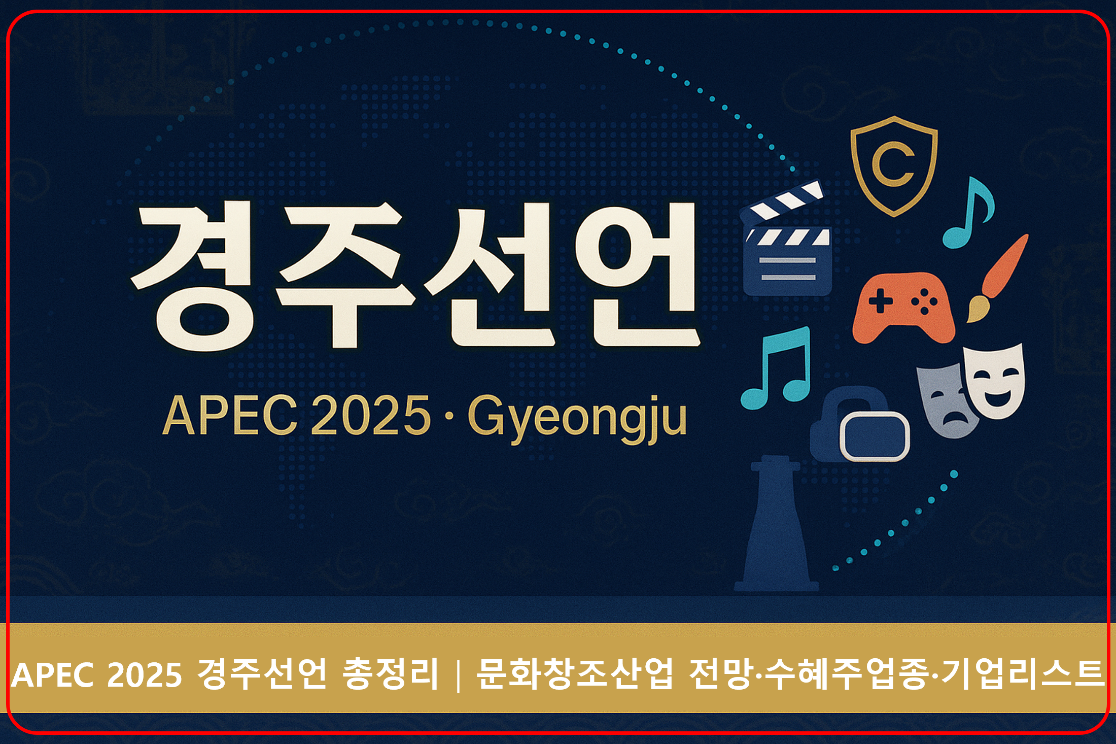 APEC 2025 경주선언 채택 (11/1)관련 내용을 알기쉽게 정리하여 전체를 총정리하고, 문화창조산업 전망·수혜주 업종·기업 리스트에 대해 설명드리겠습니다.