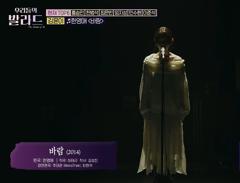 치열했던 세미파이널을 거쳐, 우리들의 발라드 파이널 생방송에 진출한 최종 TOP6는 아래와 같이 확정됩니다.