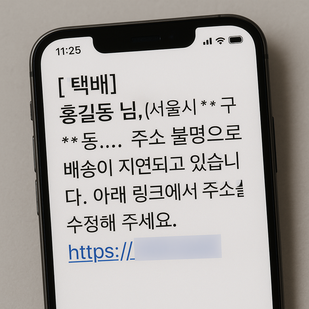 과거에는 문구나 발신번호가 허술해서 대충 봐도 사기 티가 났지만, 이제는 내 실명과 실제 우리 집 주소가 함께 들어간 문자를 보내올 수 있기 때문에 훨씬 정교하고 그럴싸하게 보일 수 있습니다.