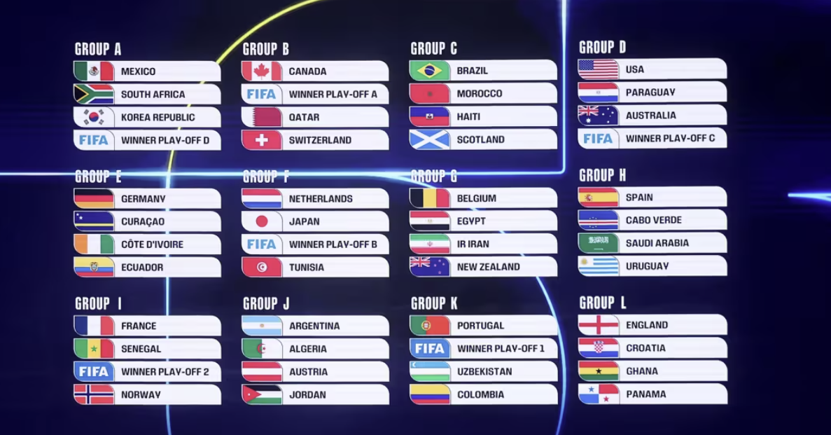 ※ 플레이오프 승자는 2026년 3월 유럽 PO 및 FIFA 인터콘페더레이션 플레이오프를 통해 결정됩니다.