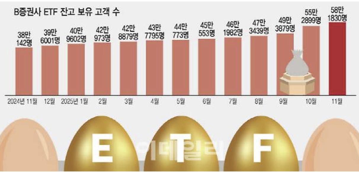 - B증권사 기준, ETF 보유 고객은 전년 대비 53% 증가