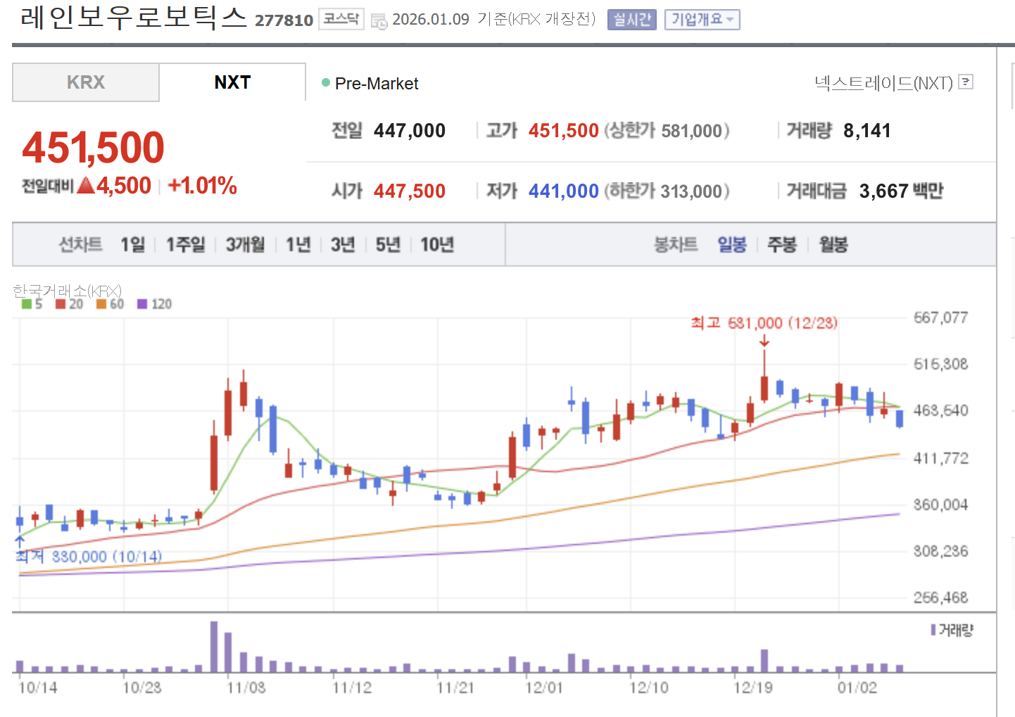 - 🔹 레인보우로보틱스: 삼성전자의 지분 투자 이후 사내 물류 및 제조 공정에 AI 휴머노이드 로봇 도입 소식이 전해질 때마다 시장의 뜨거운 관심을 받고 있습니다.