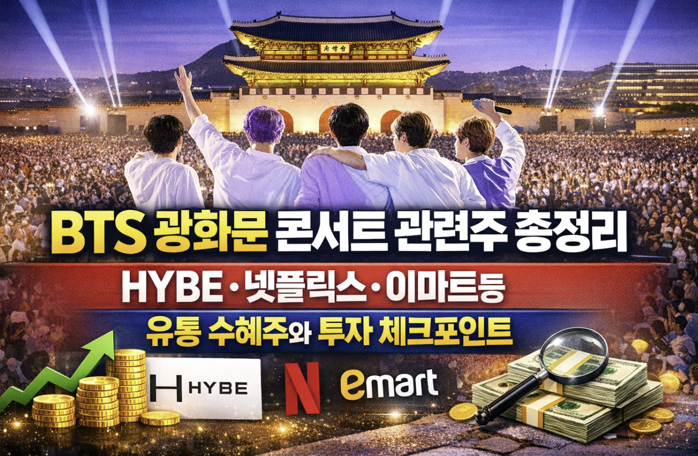 BTS 광화문 콘서트 관련주 총정리 │HYBE·넷플릭스·이마트등 유통 수혜주와 투자 체크포인트