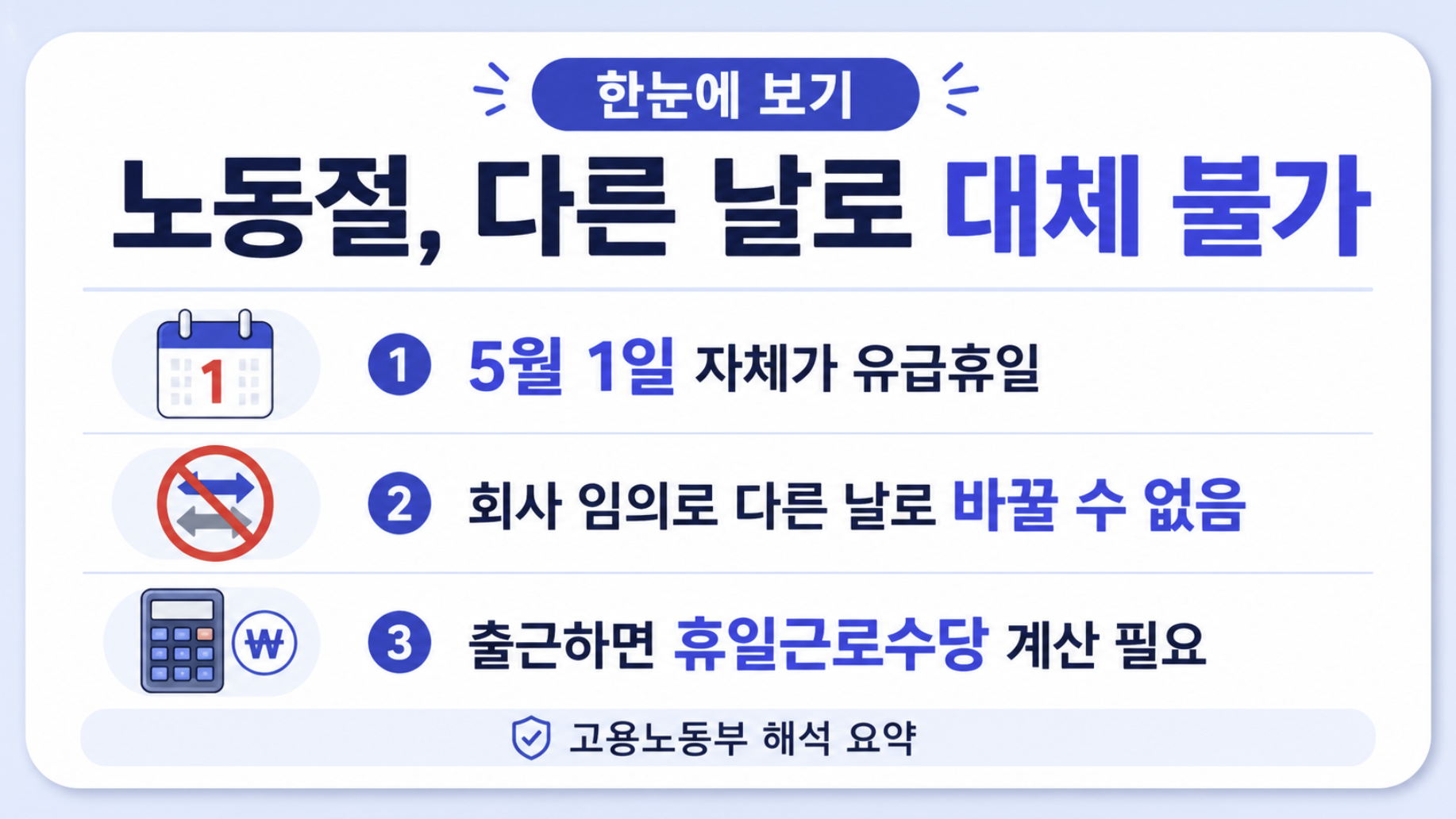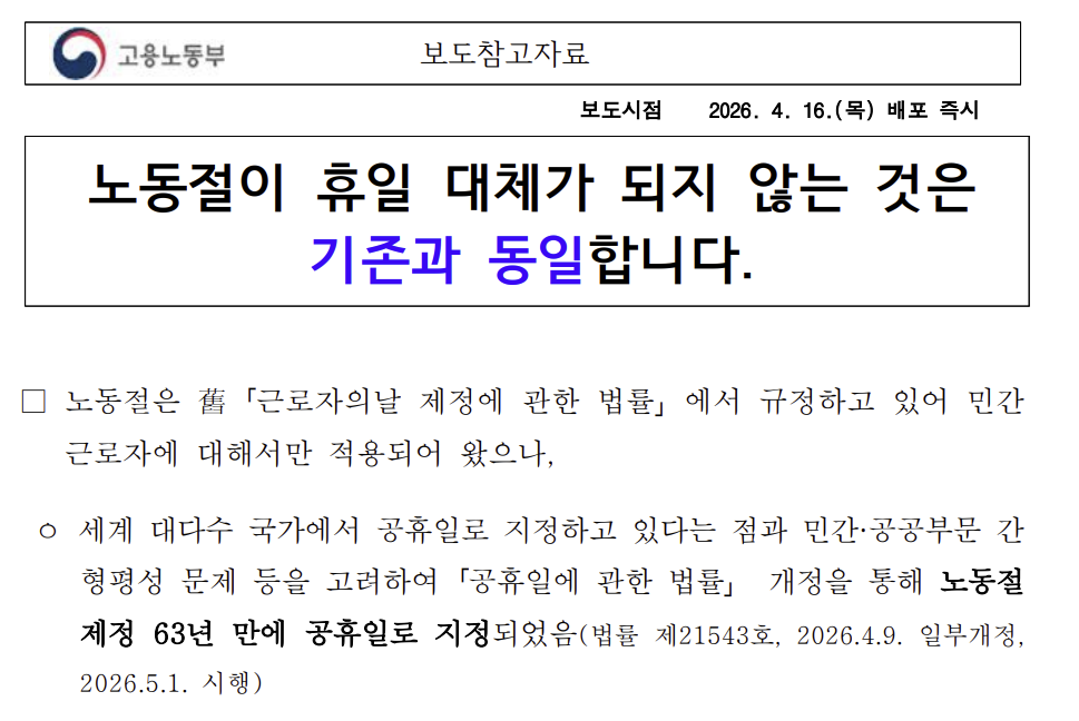 ✅ 고용노동부 노동절 해석 확인: 고용노동부 보도자료 바로가기
