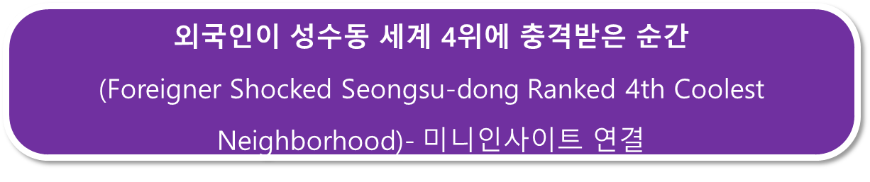 성수는 요즘 서울에서 가장 트렌디한 체험형 상권 중 하나입니다. 외국인 관광객에게 성수는 “서울 사람들이 지금 무엇을 좋아하는지”를 볼 수 있는 지역입니다.