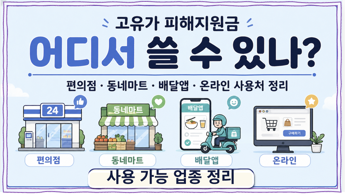 고유가 피해지원금은 신청만큼이나 어디서 쓸 수 있는지가 중요합니다. 실제로 많은 분들이 “편의점 되나?”, “동네마트는 되나?”, “배달앱도 되나?”, “온라인은 안 되나?”를 가장 많이 검색합니다.