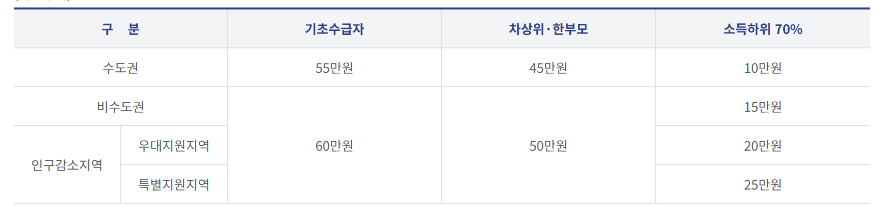 - 사용지역: 신청자 본인 주소지