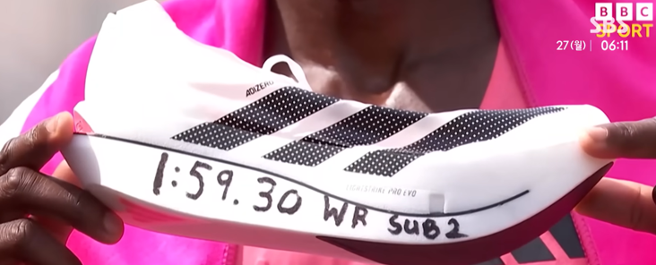 이번 기록이 더 큰 화제가 된 이유는 신발 때문이기도 합니다. 보도에 따르면 사웨, 케젤차, 아세파 모두 아디다스 Adizero Adios Pro Evo 3를 착용했습니다.