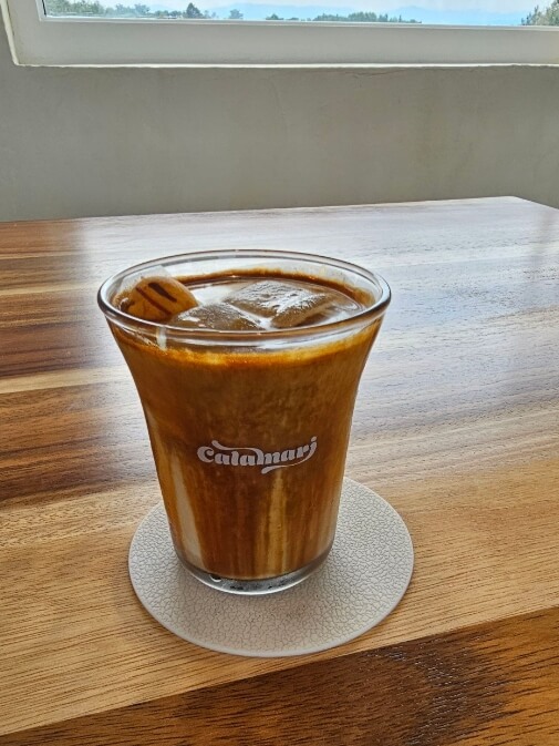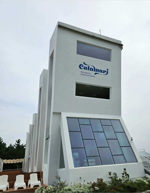 파란색 바다와 하늘을 배경으로 이곳에서 '오징어땅콩의 카페라테의 맛'과 현대감각의 디자인을 사진으로 남기고 싶으시다면, 한 번쯤 이곳에 들러 볼만한 멋진 카페 '깔라마리'라고 생각합니다. 그럼 안전하고 즐거운 여행되시기 바랍니다.